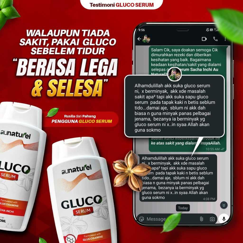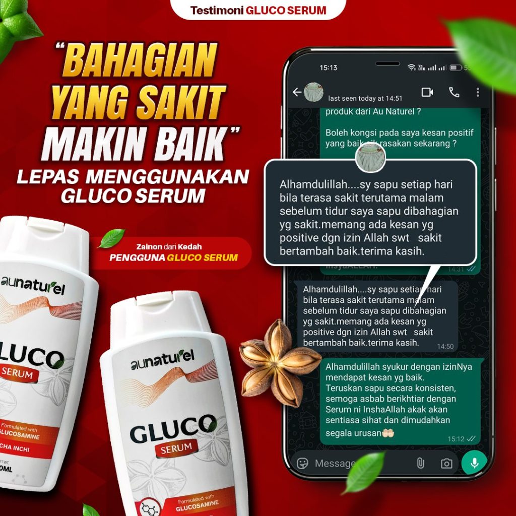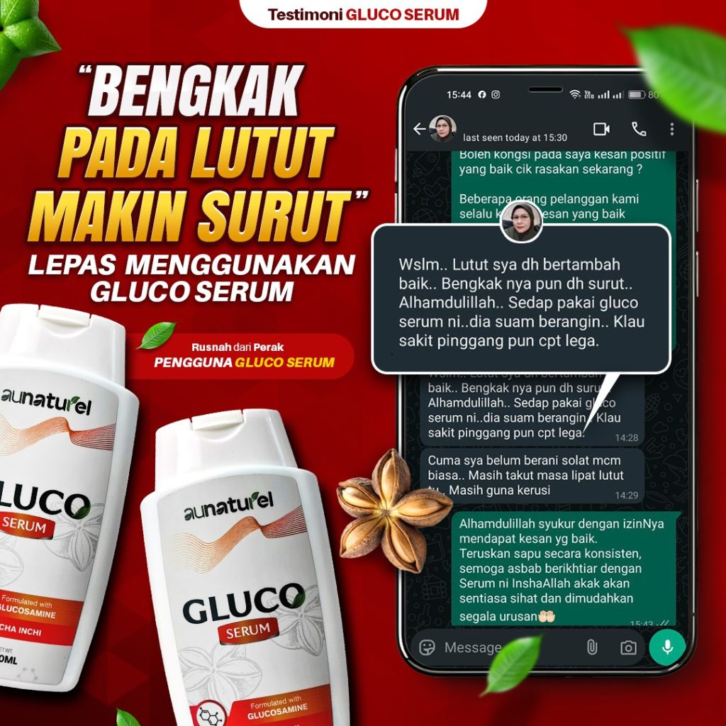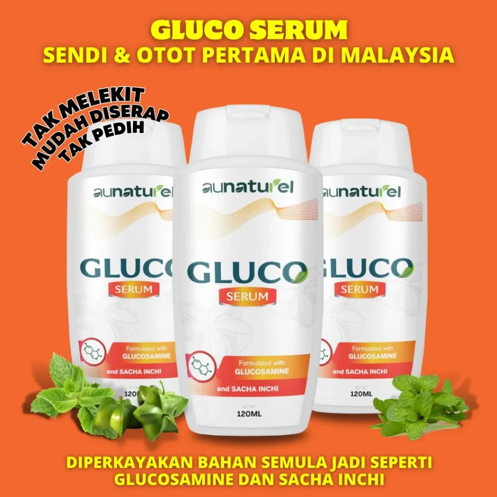 Gluco Serum yang Pertama Di Malaysia Menghasilkan Inovasi Rawatan Sistem Saraf Untuk Formula Sakit Lutut, Lutut Berbunyi, Bengkak Pada Sendi, Angin Dalam Badan Dan Kejang Otot (sakit tumit rasa sengal bisa) Dengan Mudah Tanpa Bersusah Payah Telan Pelbagai Kapsul.