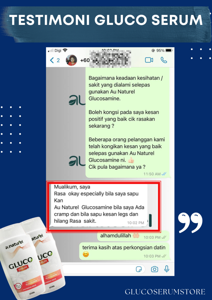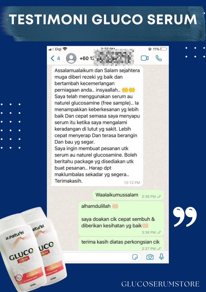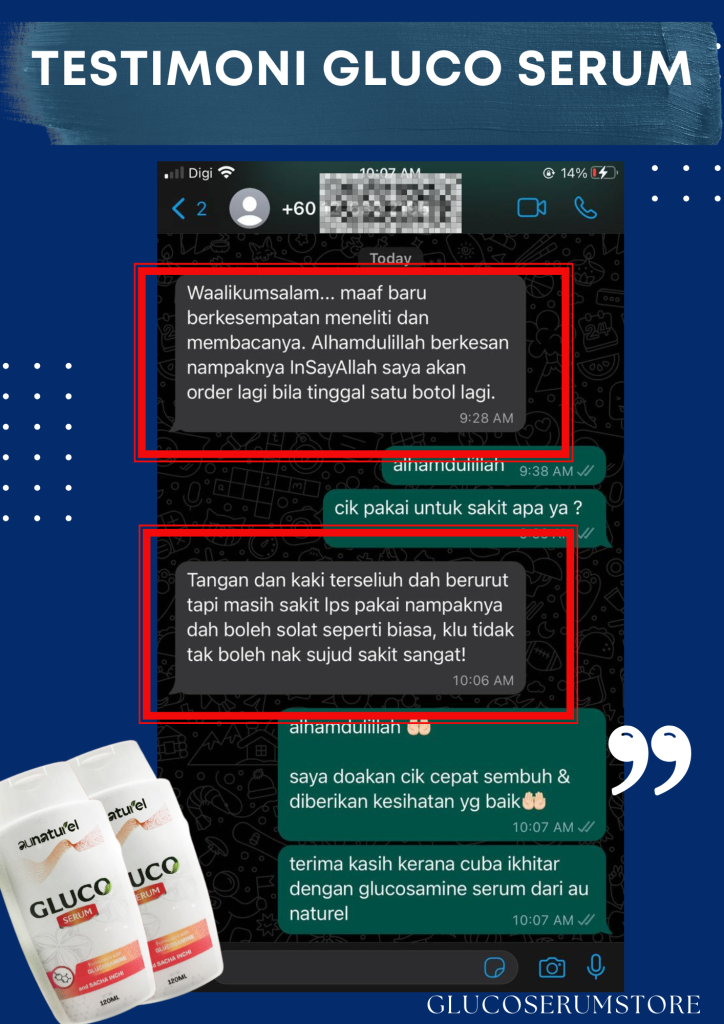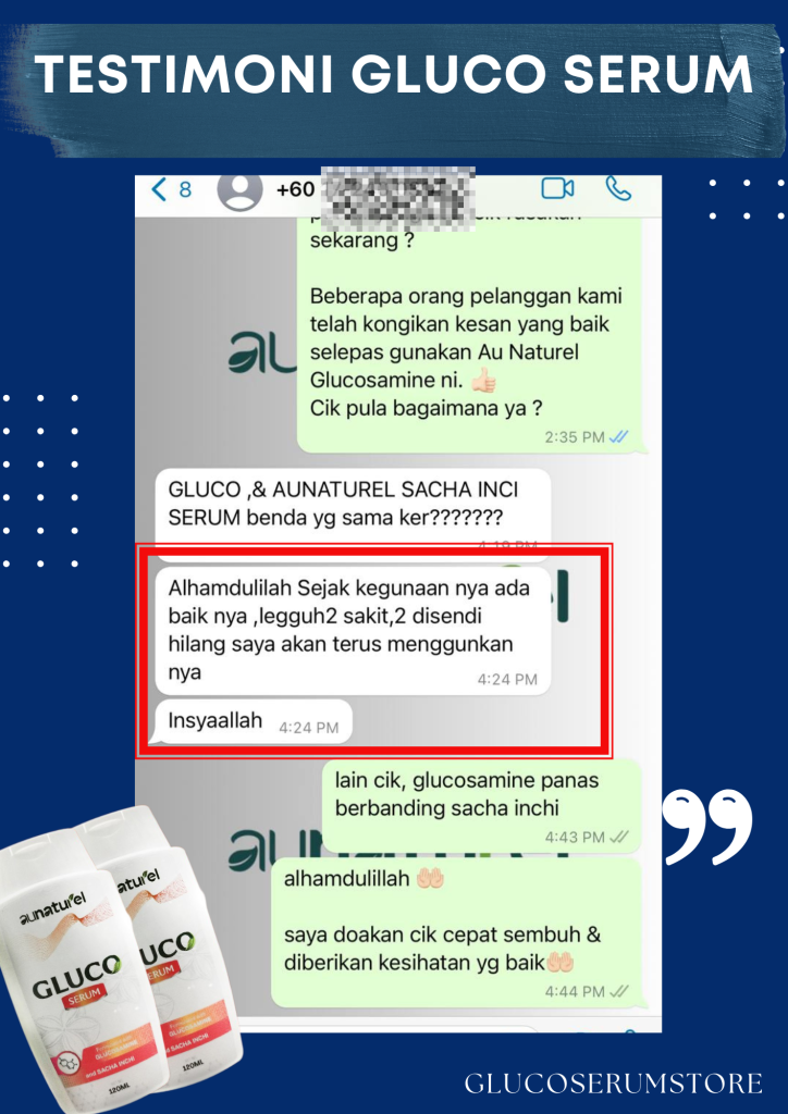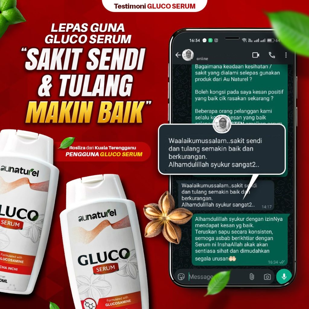 Gluco Serum yang Pertama Di Malaysia Menghasilkan Inovasi Rawatan Sistem Saraf Untuk Formula Sakit Lutut, Lutut Berbunyi, Bengkak Pada Sendi, Angin Dalam Badan Dan Kejang Otot (sakit tumit rasa sengal bisa) Dengan Mudah Tanpa Bersusah Payah Telan Pelbagai Kapsul.