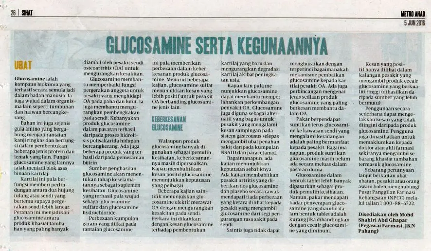 Hari Ini! GLUCOSAMINE Di Iktiraf Sebagai Salah Satu Bahan Penting Dalam Rawatan Sokongan Untuk Masalah Kesihatan Sendi